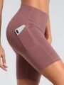 Short de sport 5 points à poches pour femme, taille haute, gainant, idéal pour le cyclisme et le yoga. Adapté à de nombreuses occasions, son design simple égaye la saison et lui donne un aspect plus dynamique. Créez des looks variés et affirmez votre style. Confortable et confortable, il vous offre une grande liberté de mouvement. Caractéristiques principales : tissu confortable