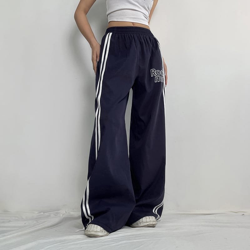 Le Pantalon de Sport femme décontracté à Jambe Large Élastique à Taille Haute avec Ruban de Couture Imprimé en Bleu Marine est un incontournable pour toutes les amatrices de mode et de confort. Disponible en tailles S, M et L, ce pantalon allie style et praticité pour un look décontracté et tendance.