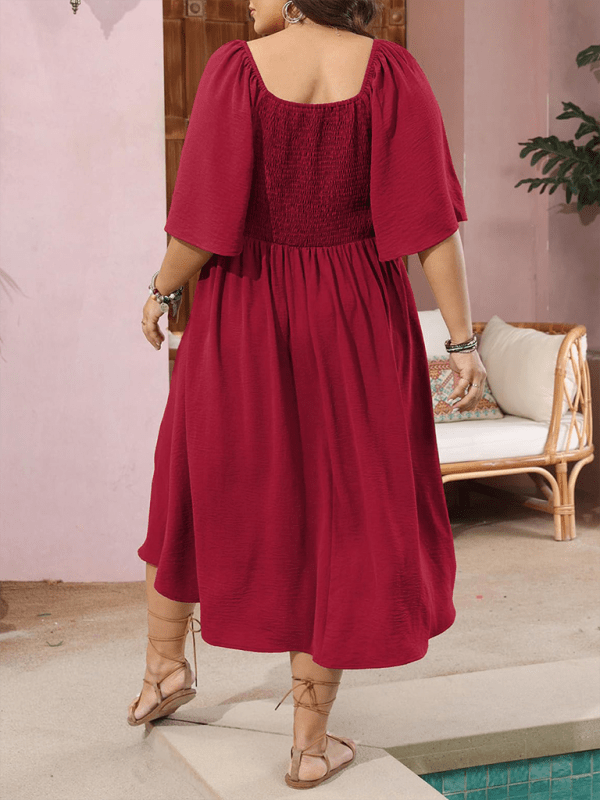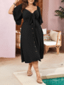 Robe Grande Taille à Nœud et Décolleté en V – Élégance Sublime. Disponible en Noir, Vert et Rouge. Parfaite pour les femmes ronde. Confectionnée en 100 % polyester. Style gracieux pour le printemps-été. Commandez dès maintenant!