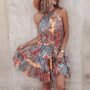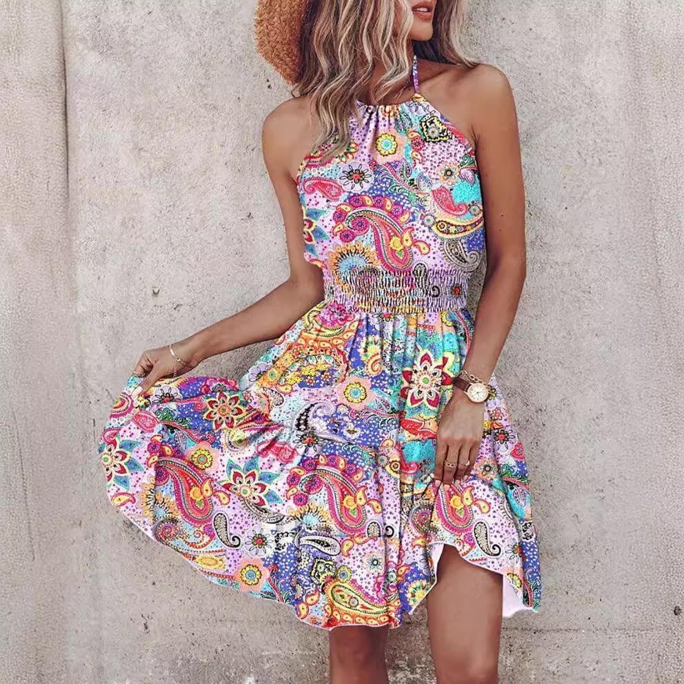 Robe licou moulante sans manches-dos nu Lavande Orange Bleu Élégante robe trapèze imprimée pour fête et club – Été