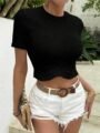 T-shirt Court Slim à Col Rond et Ourlet à Franges : L’incontournable de la Saison Printemps-Été